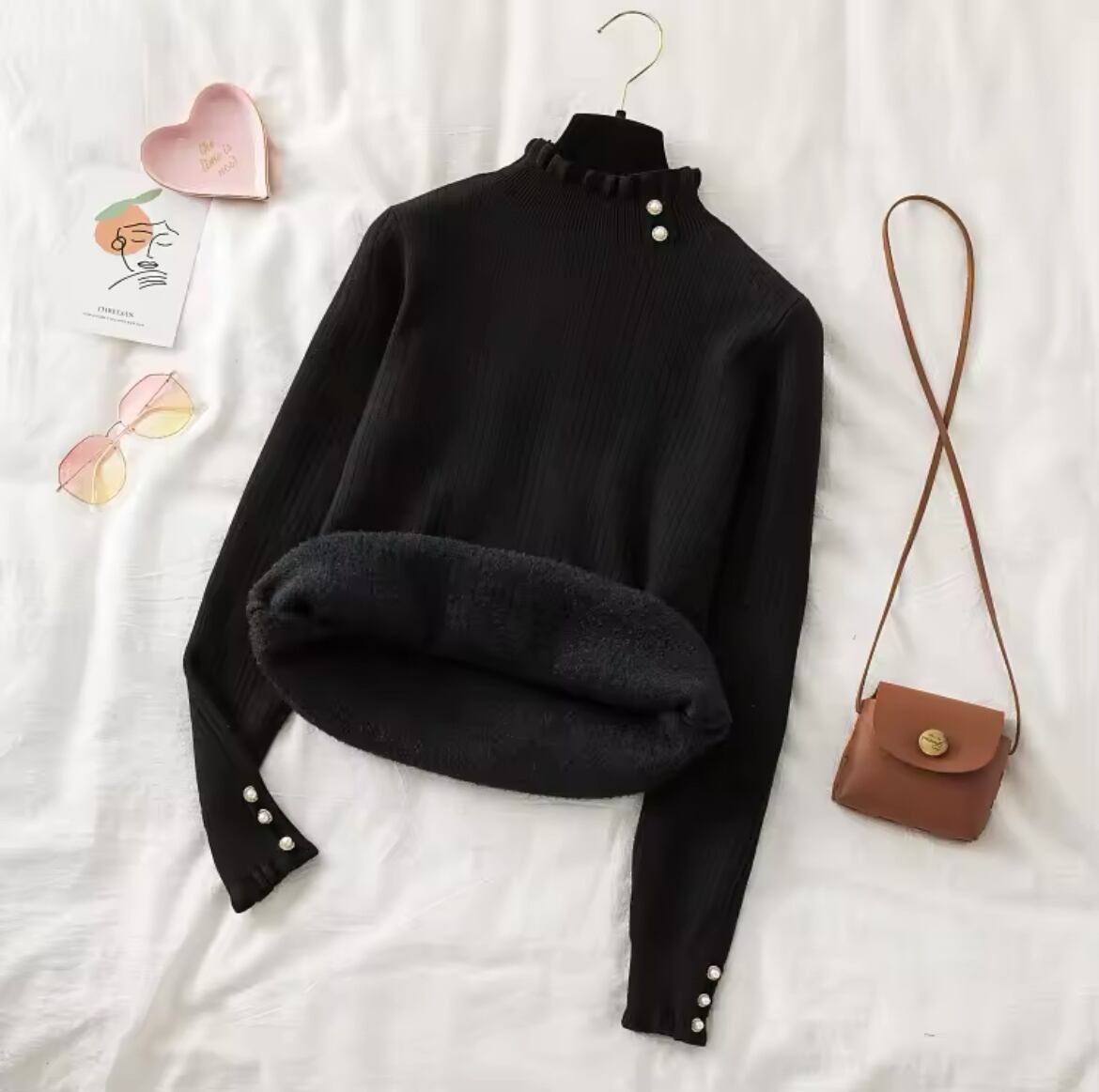 裏ボアタートルネックニットトップス