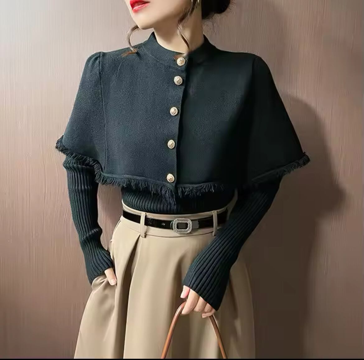 タッセルケープ付トップス ツーピースセット