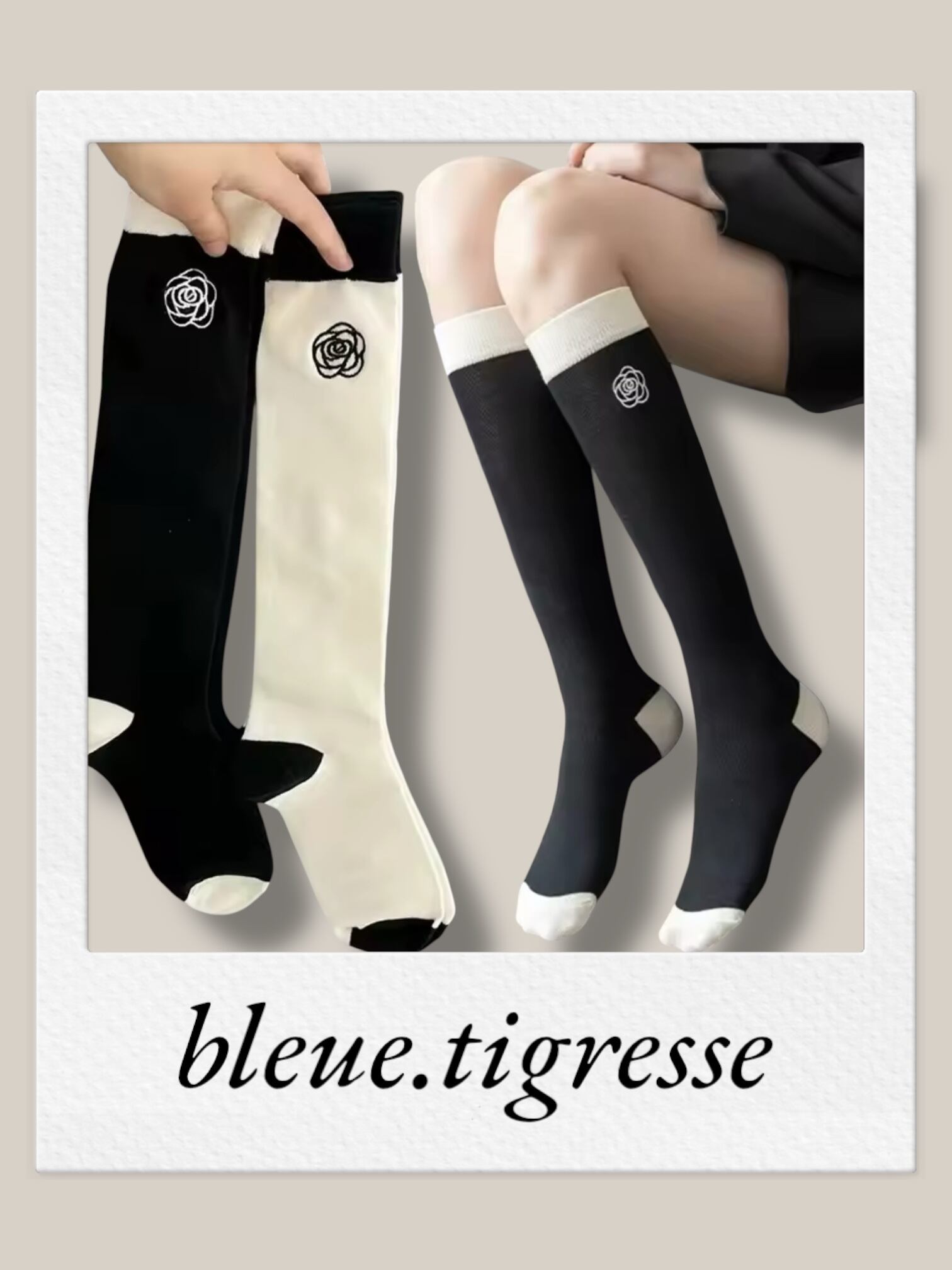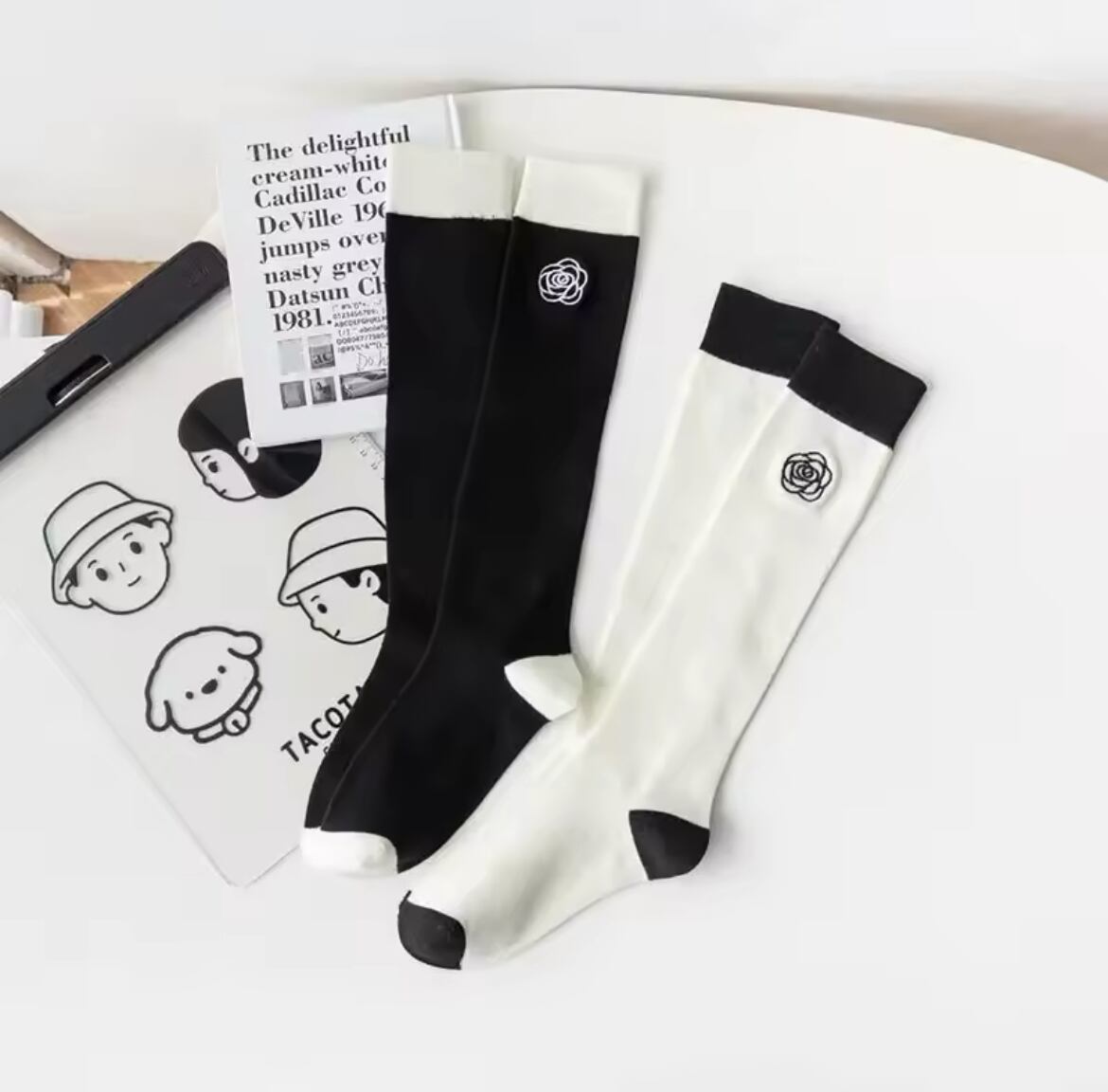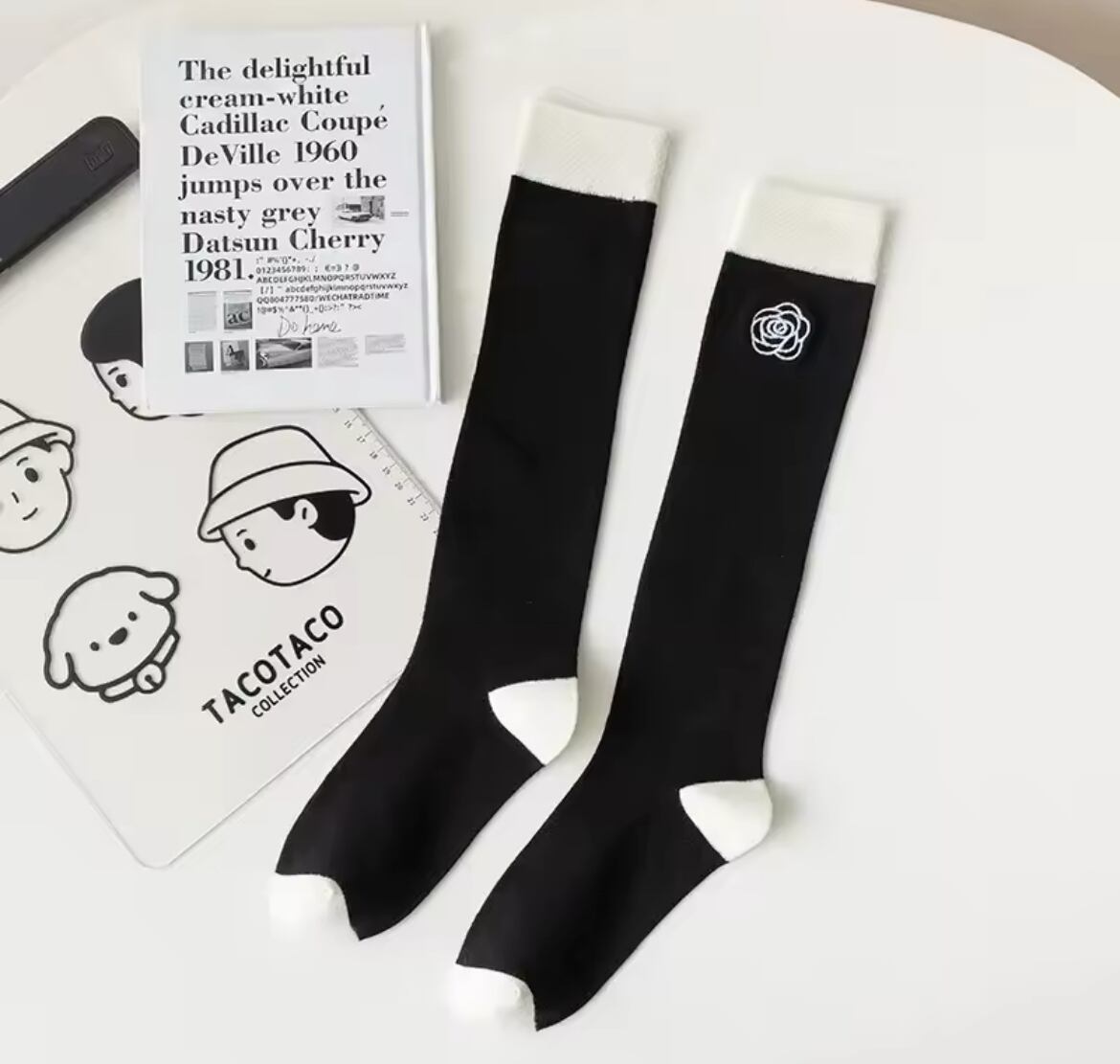 ハイソックス バイカラー モノトーン カメリアワンポイント